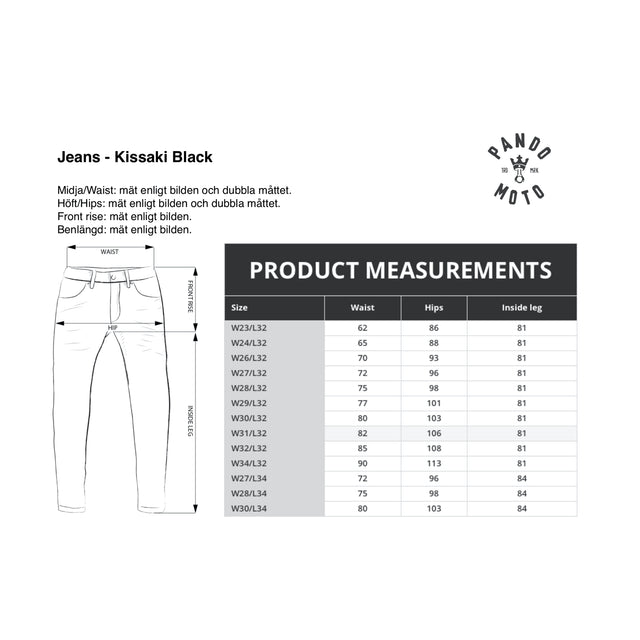 Kissaki har 25% Dyneema® vilket ger en mycket hög slitstyrka trots att det rör sig om endast ett lager denim. Likt andra modeller från PANDO MOTO så har Kissaki en del stretch i sig vilket gör att du får hög komfort som borgar för att de är lika bekväma på och av motorcykeln.