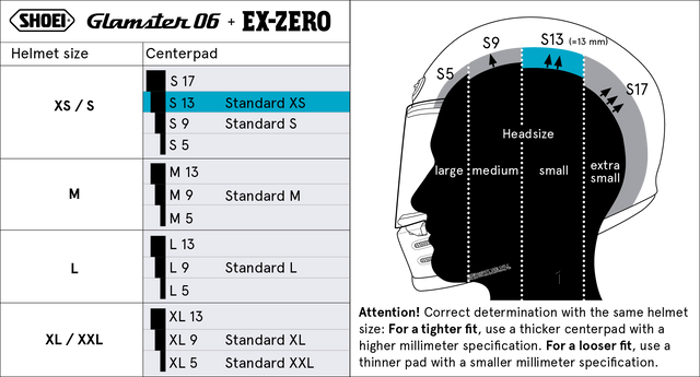 Inredning till toppdelen av hjälmen. Passar till Shoei Glamster (passar både Glamster och den nya Glamster 06) eller Shoei Ex-Zero. Perfekt om du vill justera passformen eller bara byta ut en gammal inredning.